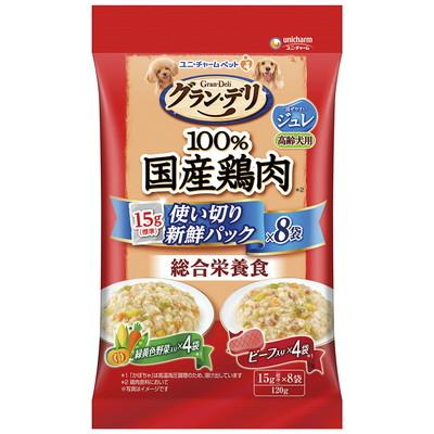 ユニ・チャーム グラン・デリ 100%国産鶏肉パウチ使い切りパック 総合栄養食ジュレ高齢犬用緑黄色野菜&ビーフ120g×2個セット「メール便送料無料(A)」
