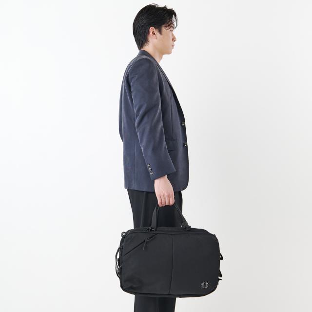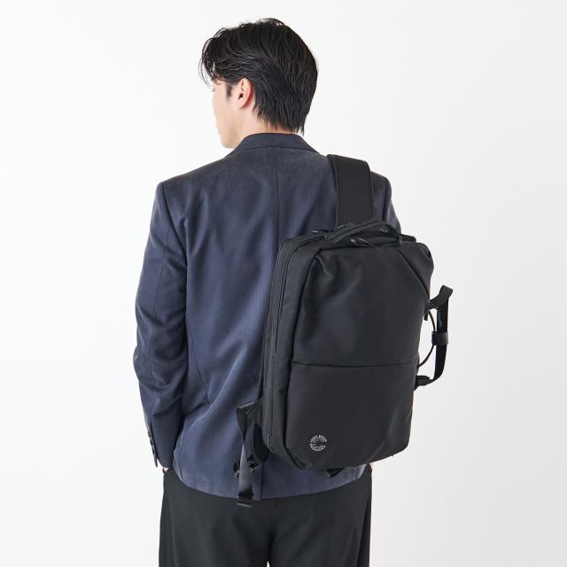 トラベルとビジネスを掛け合わせたコンセプトのトラビシリーズ。ショルダ-付きの3WAYタイプです。開けると中がスーツケースの内側のような仕様になっており、一目で見やすく収納できます。背面にPC用のクッションポケットがあります。マチが拡張し、最大25リッターの容量が入ります。旅先で荷物が増えた時にも安心です。