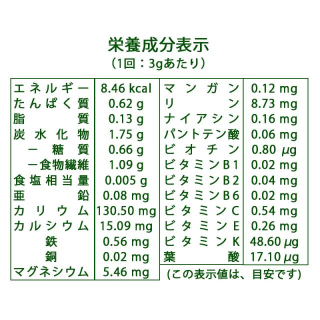 ◆原材料:九州産大麦若葉