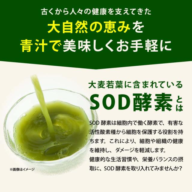 食物繊維や鉄分、ビタミン類、カルシウム、マグネシウムなど幅広い栄養素をバランスよく含んだ、前田家が素材を厳選した「大麦若葉の青汁」をお届けします。