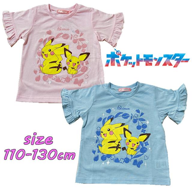 【メール便送料無料】ポケットモンスター ポケモン ピカチュウ/ピチュー 袖フリル 半袖Tシャツ キッズ プリント キャラクター キャラT 女の子 女児 ガールズ 保育園 ギフト お誕生日 新学期 入園 入学 プレゼント (PKMg224-68219 ai150025)
