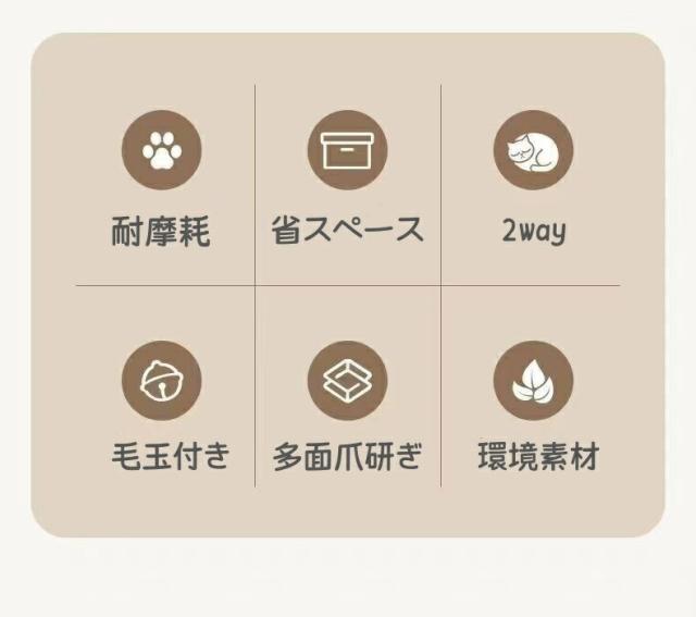 - 家具破壊防止に購入しましたが、大成功でした。爪とぎとベッドが一体になっていて、猫が自然に使ってくれます。分割可能で遊び方を変えられるのも楽しいようです。