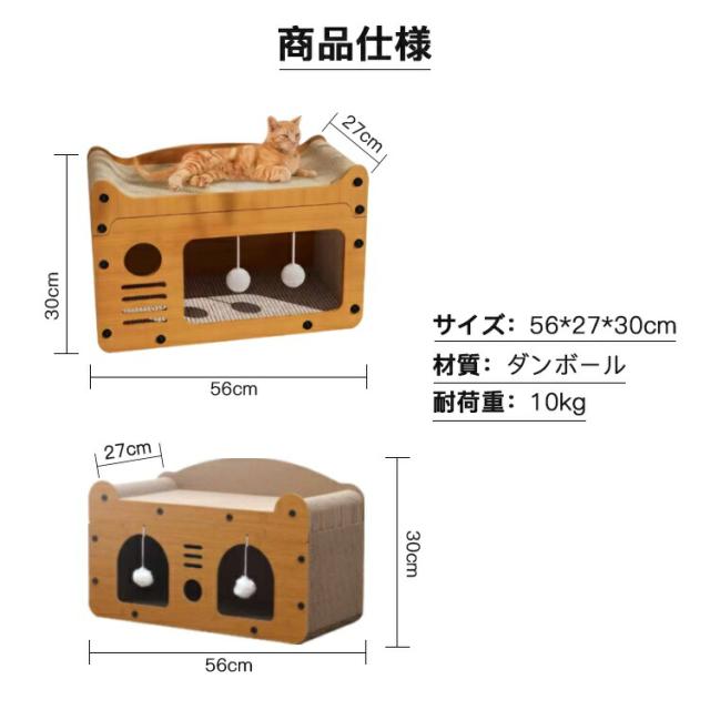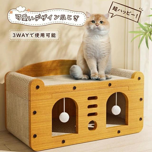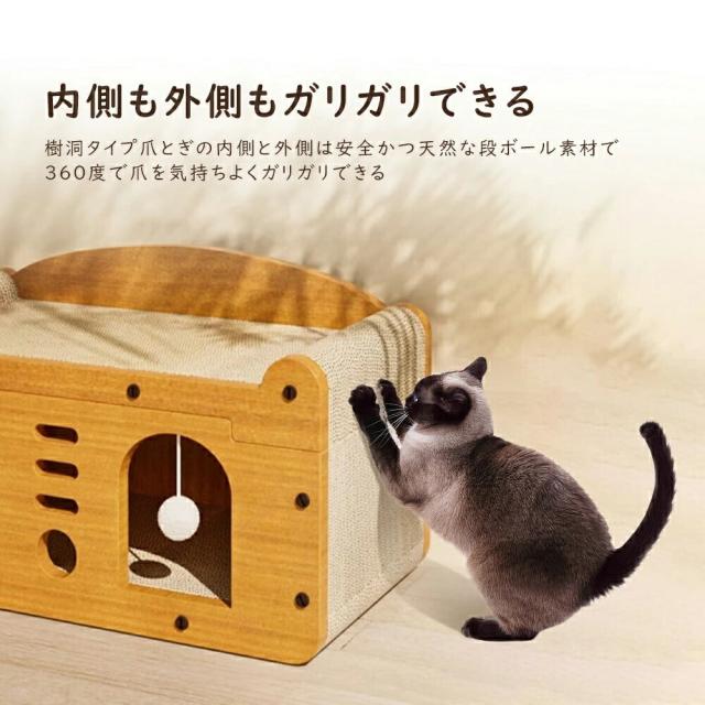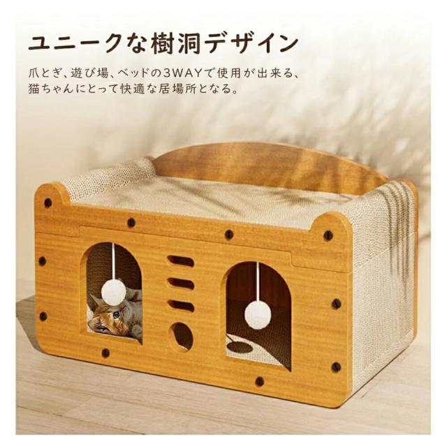 【2-in-1 猫爪とぎ兼ベッド 】爪とぎだけでなく、猫ベッドとしても使えて、縦横両方向に使える猫用ハウスで、気軽に遊んだり、寝たり、ゆっくり休んだりできます。 猫の爪とぎの習慣を満たすだけでなく、家具、ソファ、壁紙などの傷を防ぐこともできます。猫ちゃんが快適に過ごせるサイズで、小窓から外を眺めることもできます。