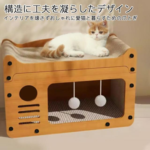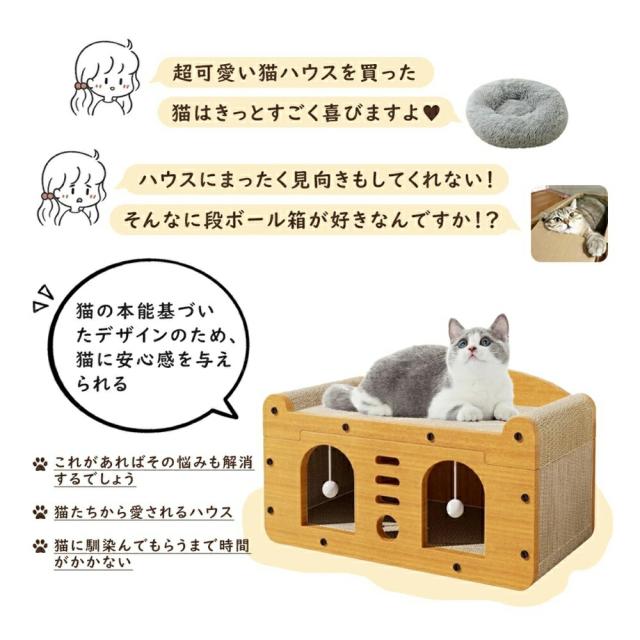 【通気 耐久 家具破壊防止】猫 ハウス 爪とぎ ダンボール 猫ベッド ペットベッド 2type選べる ネコ ねこ つめとぎ 爪研ぎ ベッド かわいい ストレス解消 毛玉付き 耐荷重 両用 木製 八面使える 分割して使用可能 おしゃれ