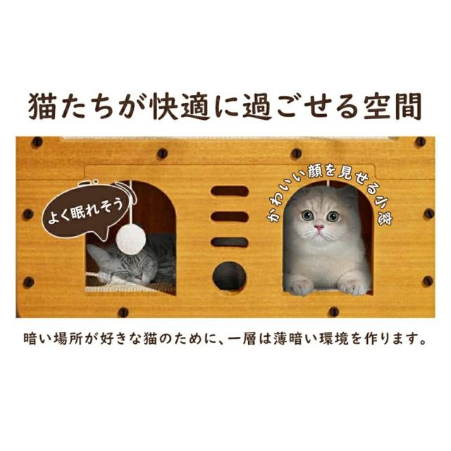 【耐久性優れている】私たちは段ボールを使わず、丈夫で環境に優しい木材で作っています。とても丈夫で丈夫で、猫が飛び乗ってもしっかりしています。通気性が良く、一年中使用できます。※耐荷重10 KG