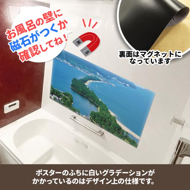 お風呂で使えるマグネット製のポスターです。 ■商品サイズ:約1100×570mm ※本製品はマグネットを使用しています。タイルや木製等、磁石がつかない壁面にはご使用いただけませんので、ご使用になる場所に磁石がつくことをご購入前にご確認ください。 |