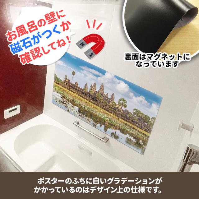 お風呂で使えるマグネット製のポスターです。 ■商品サイズ:約1100×570mm ※本製品はマグネットを使用しています。タイルや木製等、磁石がつかない壁面にはご使用いただけませんので、ご使用になる場所に磁石がつくことをご購入前にご確認ください。 |