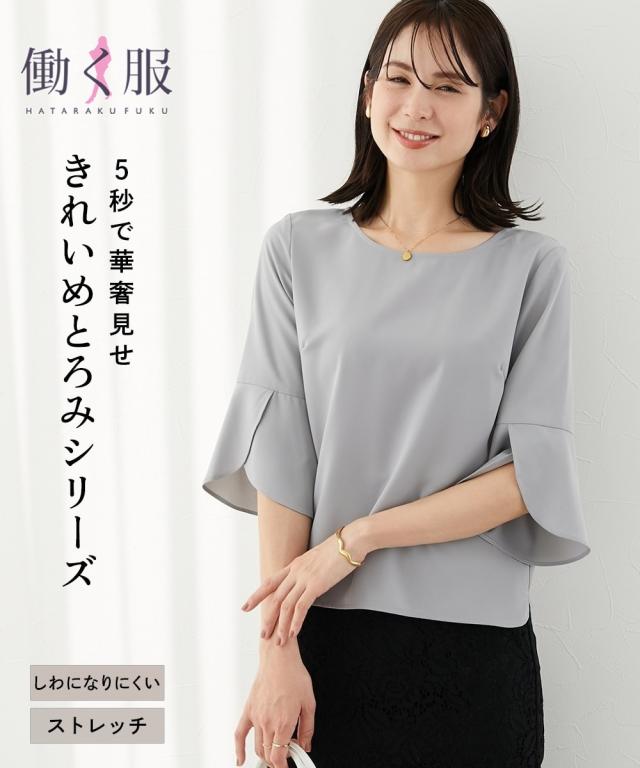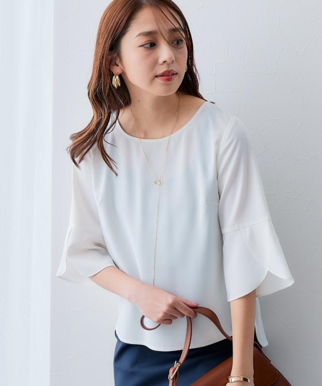 [keyword] レディースファッション 標準サイズ 普通サイズ ふつう丈 [comment] 毎日通勤からライトオケージョンまで対応できる、大人めとろみ素材で叶える選べるセットアップ対応単品シリーズ・落ち感のあるとろみ素材を使用しているので、身体のラインを拾いにくく華奢見え効果があるので、大人レディにオススメです。・お花の花びらのように優しく広がるフラワースリーブは、1枚で着映えするだけでなく、袖から覗く腕がほっそり見える嬉しい効果が ・背中には上品フェミニンなタックを施し、身体に張り付かず程よいボリュームで体形カバーも。・自宅で手洗いが可能でお手入れもしやすく、気兼ねなくご着用いただけます。