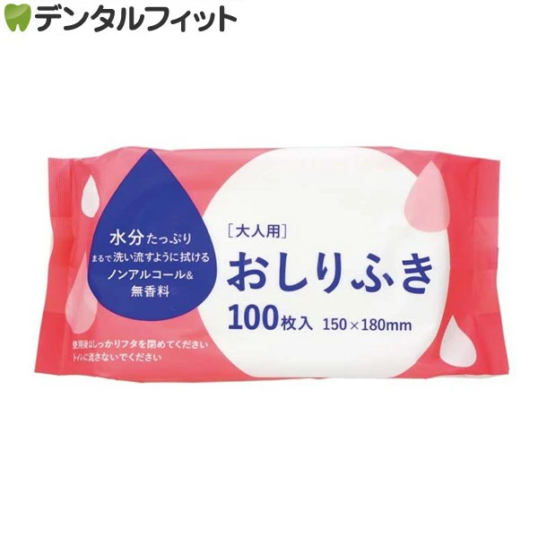 大人用おしり拭き 通常サイズ 15×18cm 1パック(100枚)/ 介護 衛生用品 防災グッズ / ノンアルコール 無香料