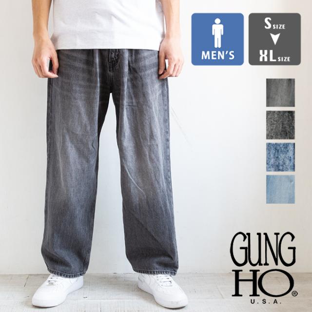 「 GUNG HO ガンホー 」 DENIM BAGGY PANTS デニム バギー パンツ GH25S013D0 / ガンホー デニム パンツ バギーパンツ USED加工 ケミカルウォッシュ ワイド アメカジ ワーク ストリート 2025SPRING
