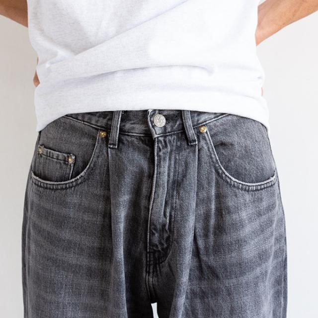 ビッグサイズのデニムにタックを付けリメイクしたようなデザインに仕上げたバギーデニム。 テーパードを抑えたワイドなバギーシルエットを採用。 |