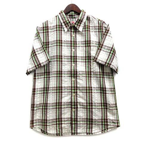 【中古】エクストララージ X-LARGE コットン リネン チェック 半袖 シャツ ホワイト ブラウン 白 茶 M メンズ