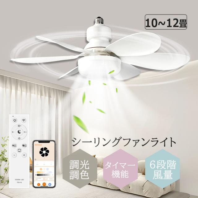LEDシーリングライト E26口金 サーキュレーター付き 照明付き シーリングファン サーキュレーター付き 天井照明 天井ファン ファンライト アプリ対応 遠隔操作 音声操作 調光調色 無段階風量調整 タイマー 正逆回転 リモコン付き リビング キッチン 寝室 オフィス
