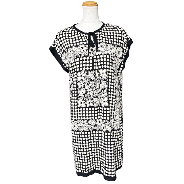 【中古】アナスイ ANNA SUI タグ付き ワンピース ドット 花柄 ブラック アイボリー S レディース