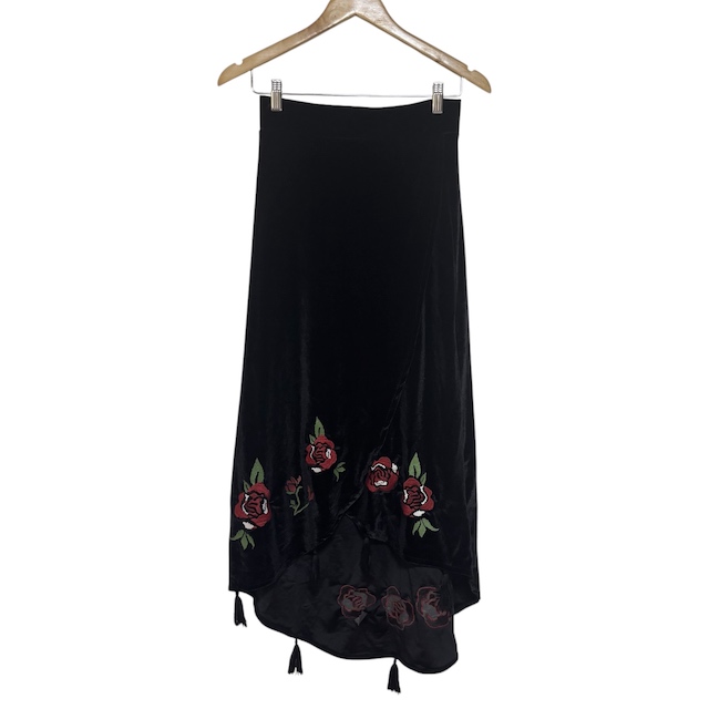【中古】ザラ トラファルック ZARA Trafaluc ベロアロングスカート ボトムス 薔薇刺繍 黒 ブラック S レディース