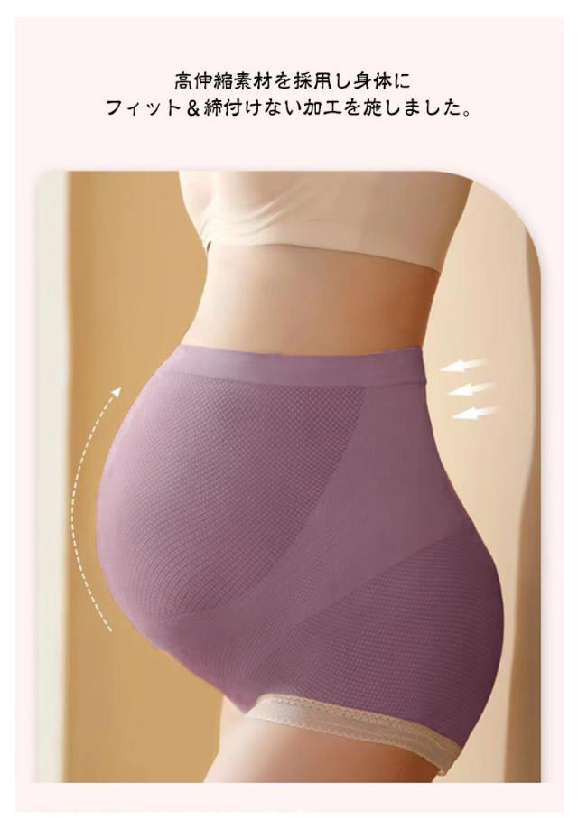 | 安心感にスッポリ包まれます! ハイウエストショーツでお腹の赤ちゃんをスッポリ包んで守りましょう。 高伸縮素材を採用し身体にフィット&締付けない加工を施しました。 お腹の冷えから赤ちゃんを守ります! お腹をスッポリ包むハイウエストなので、お腹全体ぽかぽかです! | |