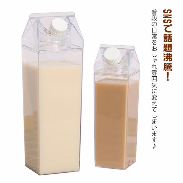 牛乳パック ドリンクボトル 2個セッド 牛乳瓶 ミルクボックス 透明 500ml 1000ml 角型 直飲み ウォーターボトル 水筒 スポーツ 旅行 キャンプ アウトドア用 送料無料