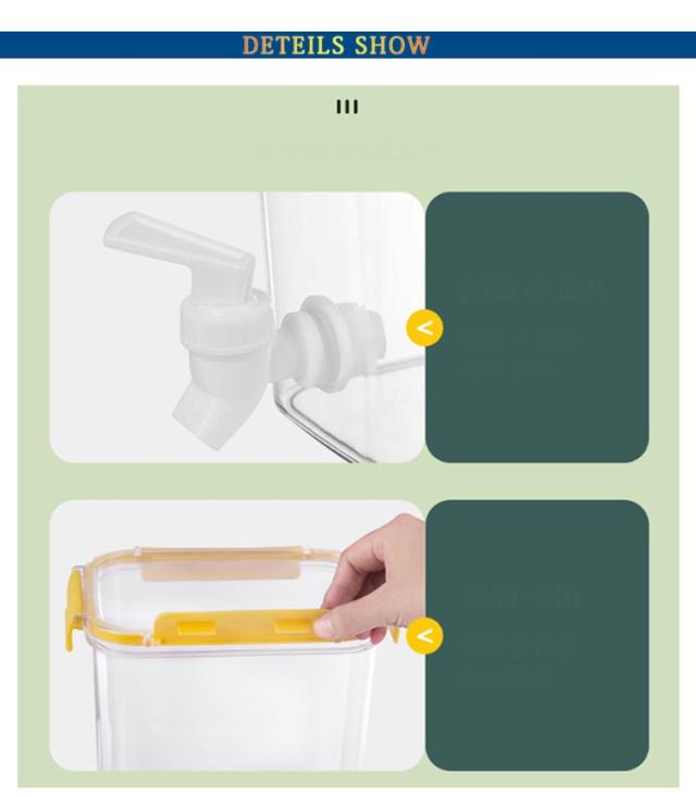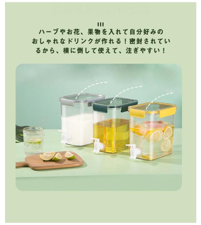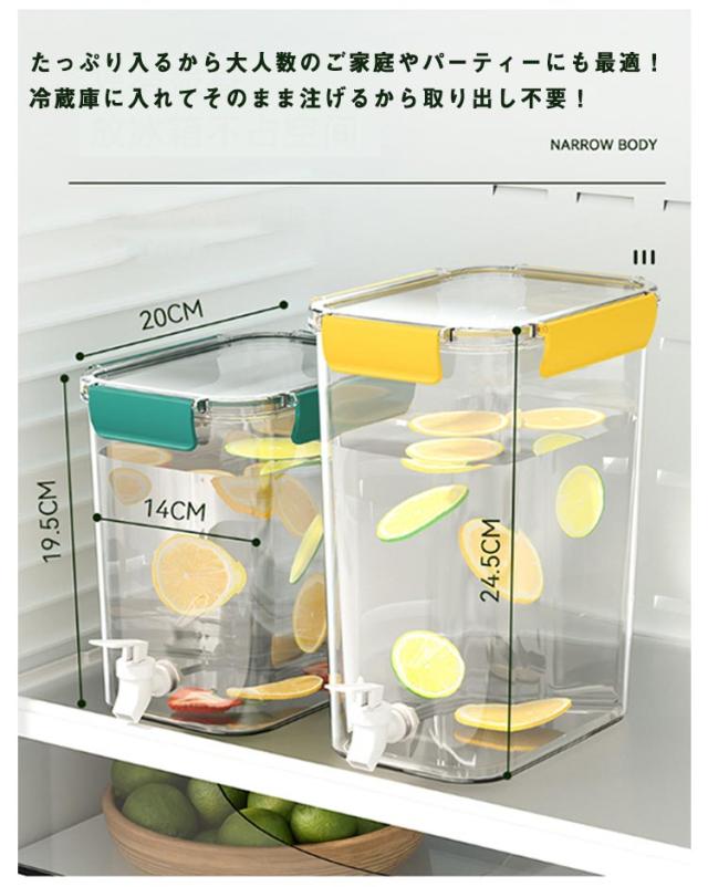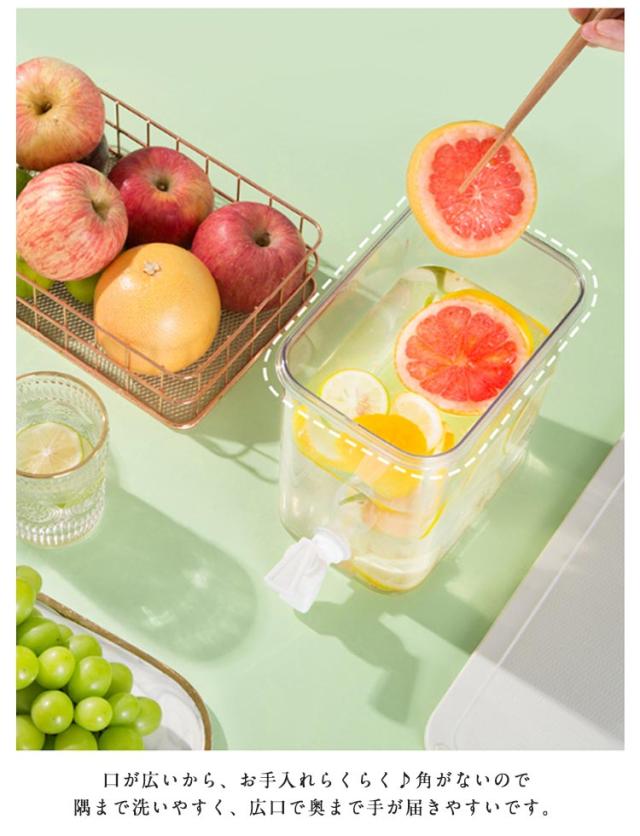 | 3.5L/4.5L 蛇口付き大容量冷水ポット 蛇口があるので、ビールやジュースなどの飲料水を注いで、そして冷蔵庫に入れたら、いつも冷たい飲み物を飲ませます! たっぷり入るから大人数のご家庭やパーティーにも最適!冷蔵庫に入れてそのまま注げるから取り出し不要! 口が広いから、お手入れらくらく♪角がないので隅まで洗いやすく、広口で奥まで手が届きやすいです。 良い品質の素材を採用して作られたこの冷水筒は丈夫で地面に落ちても割れない、そして長く使えて耐久性も優れています! ハーブやお花、果物を入れて自分好みのおしゃれなドリンクが作れる!密封されているから、横に倒して使えて、注ぎやすい! | |