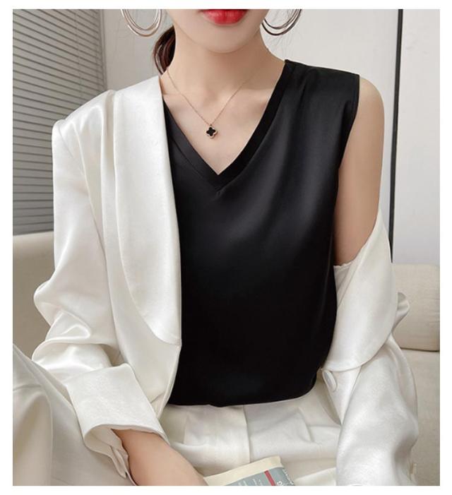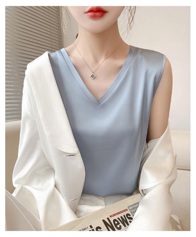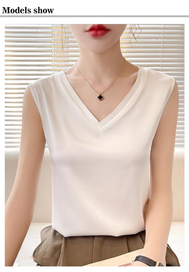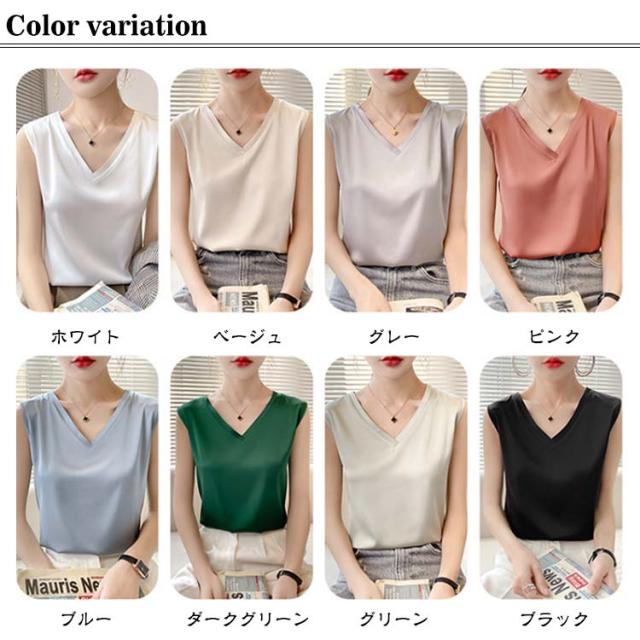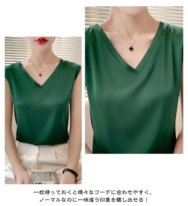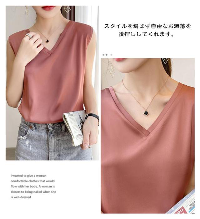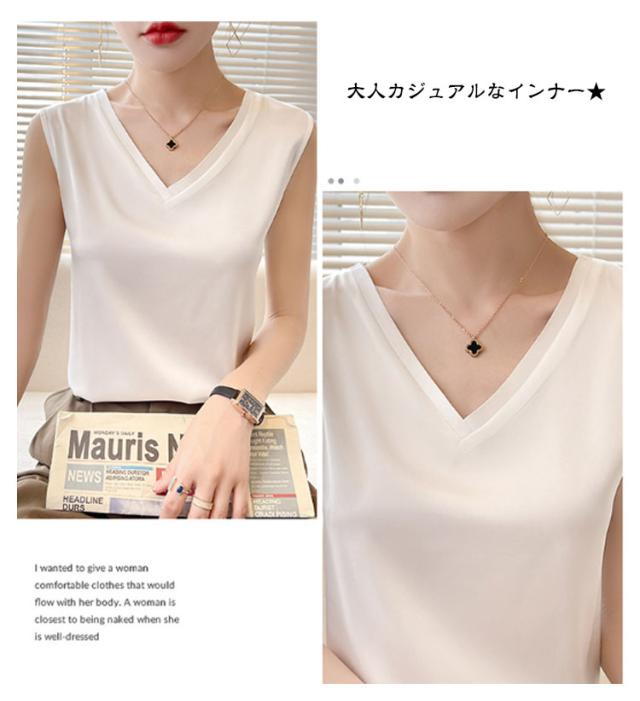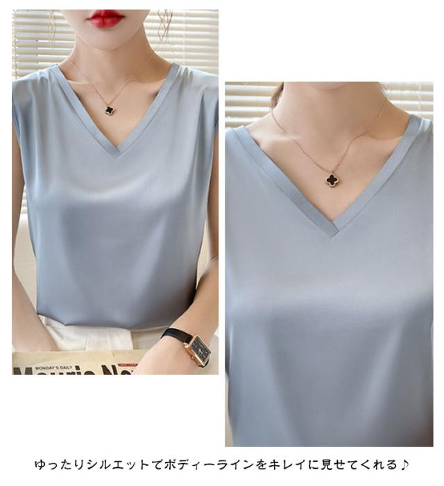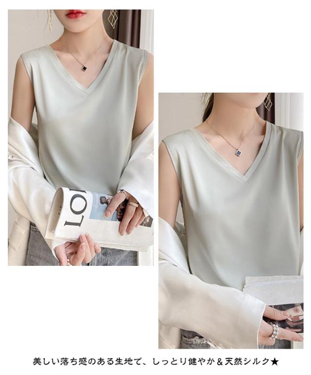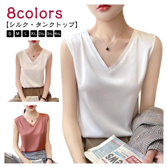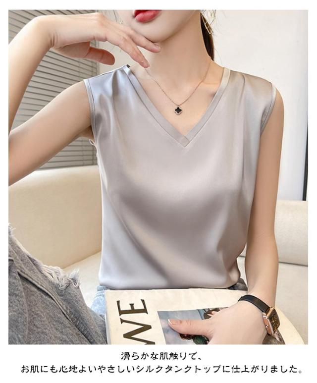 タンクトップ シルク レディース キャミソール トップス ノースリーブ サテン インナー 大きいサイズ シャツ Vネック ブラウス ブラ紐隠し 上品 光沢感 吸湿 保湿 春夏 ルームウェア シルクサテン 大人 光沢感 ツルツル 透けない 重ね着