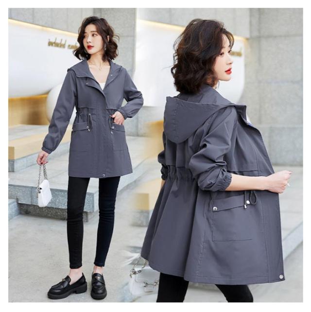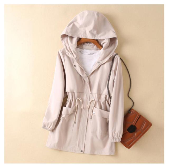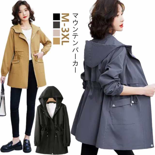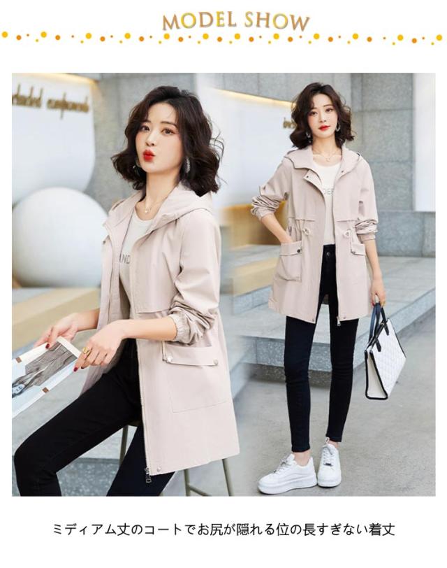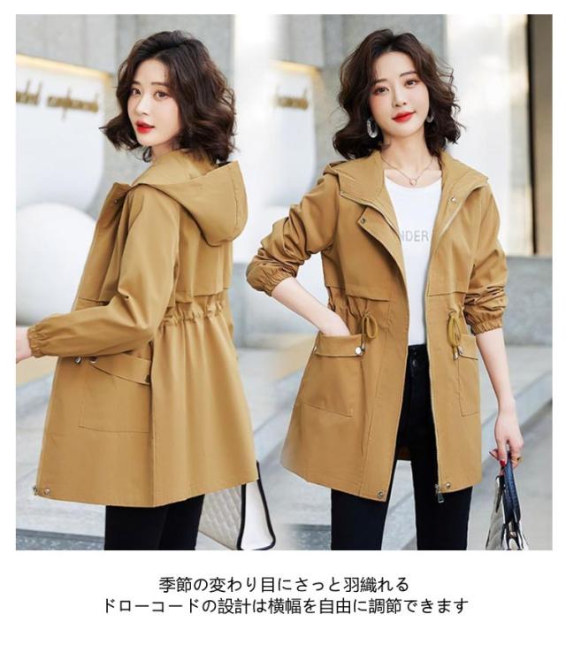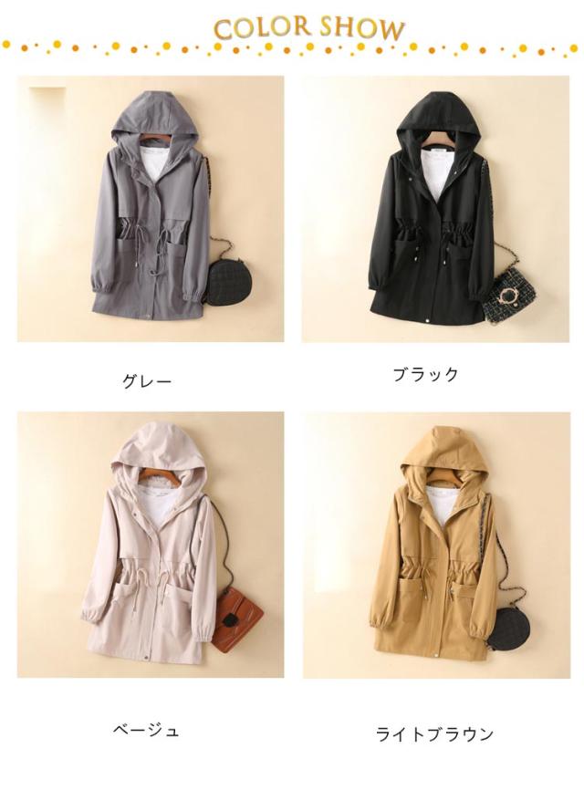 マウンテンパーカー アウター レディース ウィンドブレーカー ブルゾン トレンチコート フード付き モッズコート ドローコード コート 小顔 薄手コート ジャケット 大きいサイズ 長袖 体型カバー パーカー スプリングコート 軽量 お尻が隠れる 通気 防風 春 秋