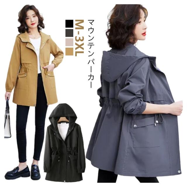 | マウンテンパーカー M-3XL ミディアム丈のコートでお尻が隠れる位の長すぎない着丈 季節の変わり目にさっと羽織れる ドローコードの設計は横幅を自由に調節できます | |