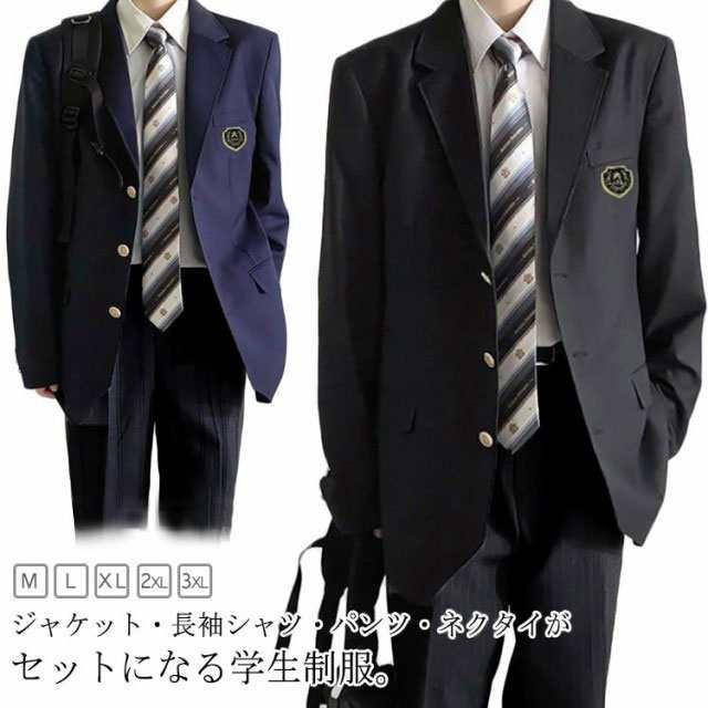 4点セット 制服 学生服 男子高生 ブレザー スクールジャケット 上下セット 学生 制服 入学式 卒業式 スーツ フォーマル 長袖 スクールシャツ スクールパンツ ネクタイ 男子 高校生 学生 中学 通学 学校 制服 男子高生 学生服 スクール制服 紺 ブラック コスチューム