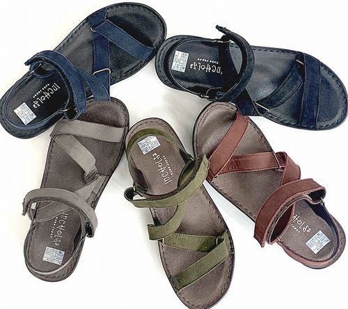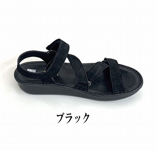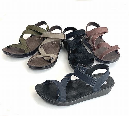 | 爪先のかえりよい船底タイプの楽々コンフォートで、足の負担を和らげ、歩行にも最適♪ ソフトな天然皮革起毛(ヌバック)素材のベルトラインデザインのサンダル コンフォートシューズ |