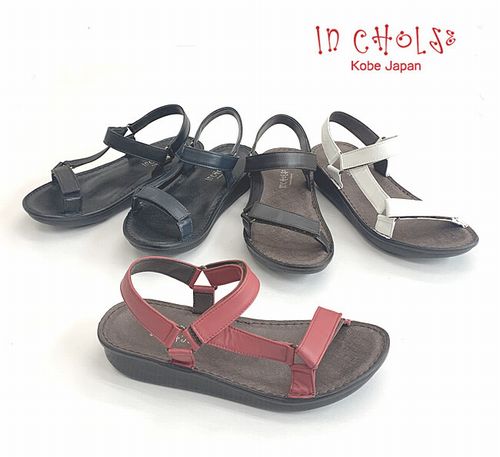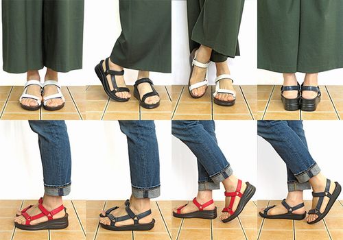 甲部分、つま先部分共にマジックテープで調節が出来るので素足・ソックス履き等状況に応じて調整が可能です。