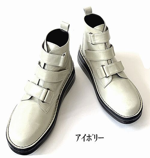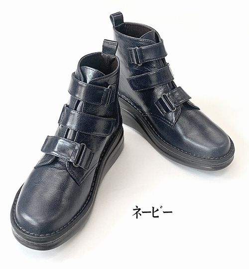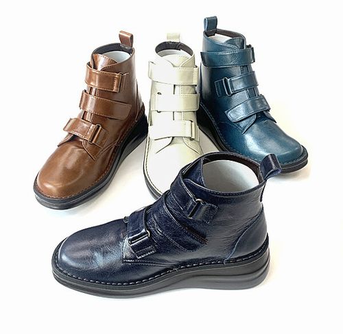 | マジックテープ止のトリプルベルトショートブーツ! クッション性のあるインソールで快適な履き心地。 |