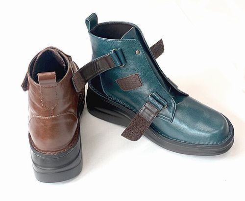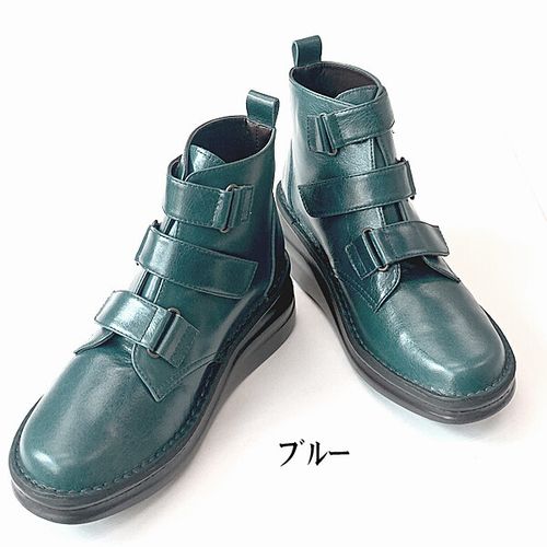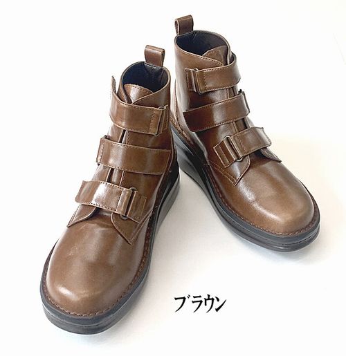 ブーツ レディースシューズ レディースファッション 靴 発色プルアップレザー ストラップベルトブーツ マジックテープ トリプルベルト