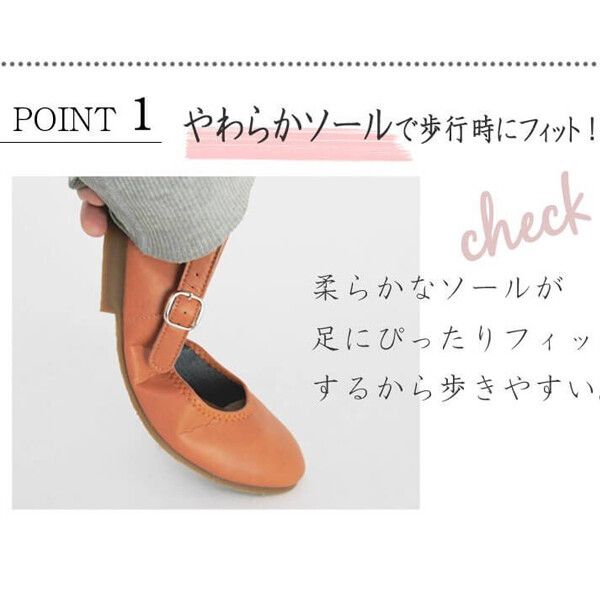 ほどよい丸みのラウンドトゥで全体的にゆったりかわいらしいフォルムです。