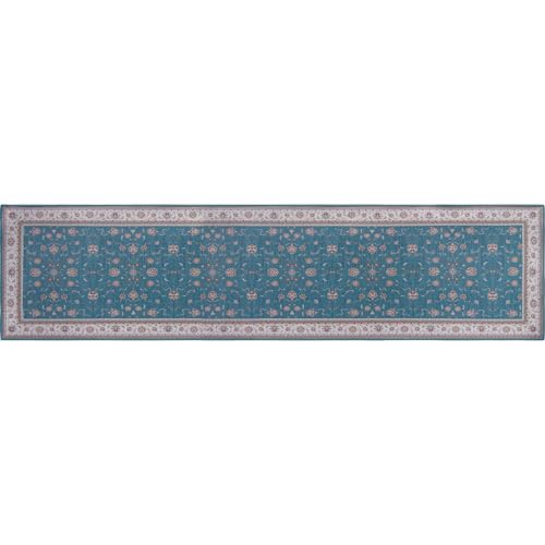 オカトー khastan カスタン インテリアマット キッチンマット 玄関マット 洗える すべり止め加工 縦45×横180cm ブルー