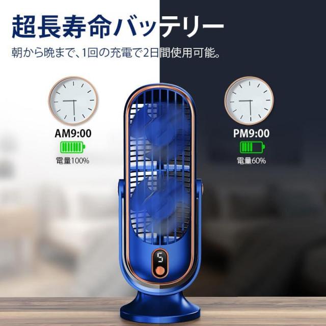 タワーファン スリム扇風機 小型 扇風機 卓上扇風機 5段階風量調節 4000mAh 大容量バッテリー 720°上下調節 電式 静音 オフィス 更衣室
