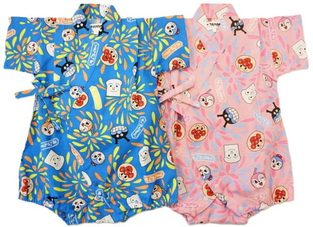 【メール便利用!送料込み】BANDAIそれいけ!アンパンマン甚平ロンパスSA9874(ブルー・ピンク)70cm80cm綿100%カスリドビー