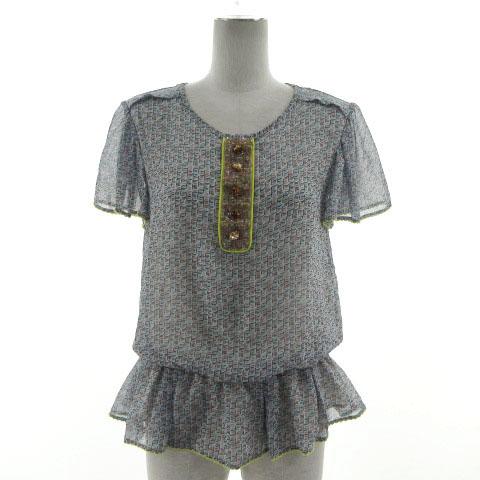 【中古】Chesty ブラウス ビーズ スパンコール ウエストゴム シアー素材 総柄 青系 グレー 紺 オレンジ 黄色 1