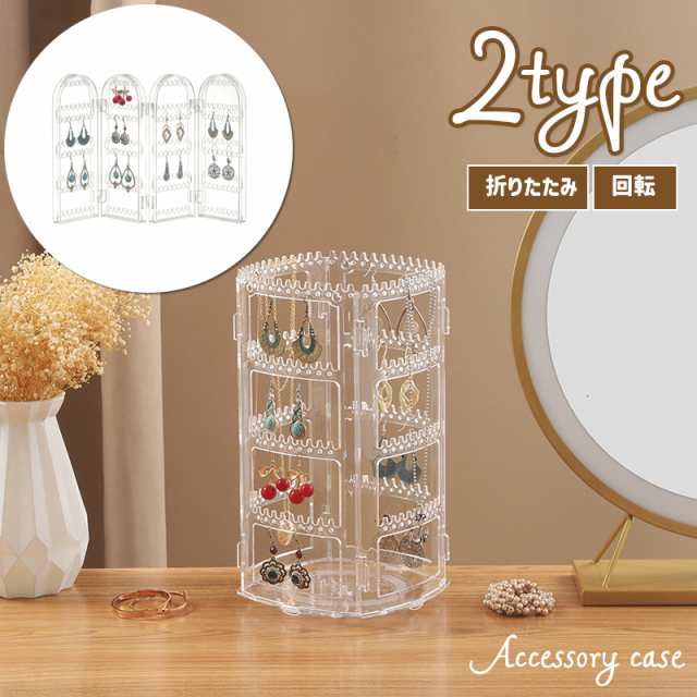 アクセサリーケース アクセサリーボックス スタンド クリア 透明 ディスプレイ 見える収納 回転 折りたたみ ピアス イヤリング