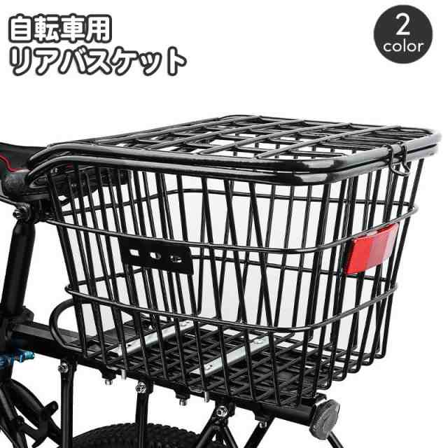 自転車用カゴ リアバスケット 後ろカゴ リアかご フタ付き 蓋 ふた 荷台設置 荷物 買い物 通勤 通学 スチール 大容量 固定