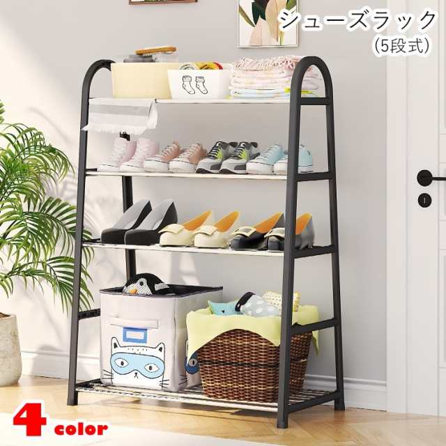 シューズラック シューズボックス 収納雑貨 インテリア 組み立て式 5段 無地 ブラック ホワイト ゴールドカラー シンプル カ