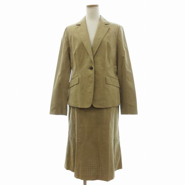 【中古】リフレクト スーツ セットアップ フェイクスエード テーラードジャケット 1B スカート 44 ベージュ