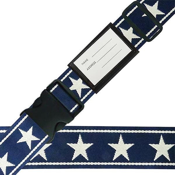 スーツケースベルト ワンタッチベルト ビッグスター柄 紺×白 大きな星柄のスーツケースベルト。