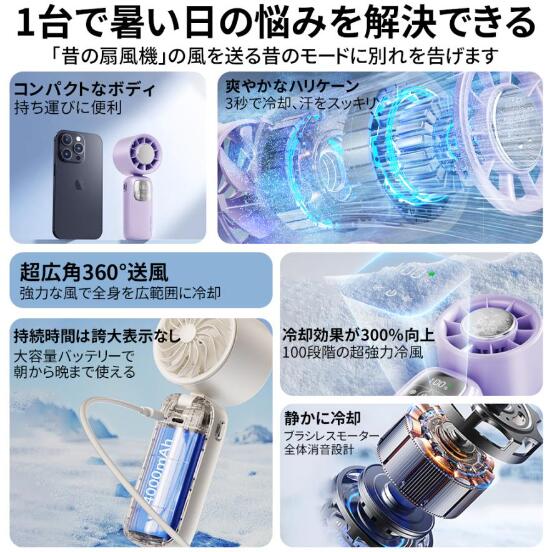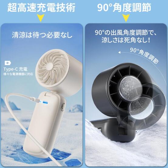 2025 扇風機 冷却プレート 手持ち 小型 折り畳みハンドファン コンパクト 携帯扇風機 Max24時間連続 100段階調節 4000mAh大容量 軽量 静音 16℃急速冷却 首掛け 90°調整 usb充電 ハンディ扇風機 最新 熱中症対策