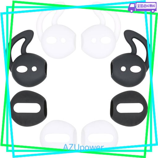 パッケージ内容物:APPLE AIRPODS 専用イヤーチップ 4ペア(フック型のホワイトブラック、超薄型のホワイトとブラックそれぞれ1ペア)。