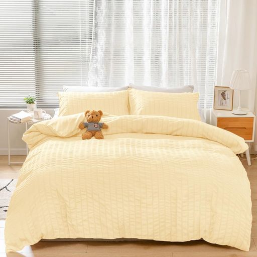 AYO 布団カバー シングル 3点セット フリル付き シアサッカー生地 掛け布団カバー ベッドカバー 枕カバー ボックスシーツ フリル付き 寝具カバーセット かわいい 布団かばー アイボリー …
