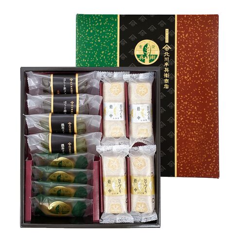 京都宇治「北川半兵衛商店」の厳選抹茶とほうじ茶を使用した和洋菓子の詰め合わせギフトです。