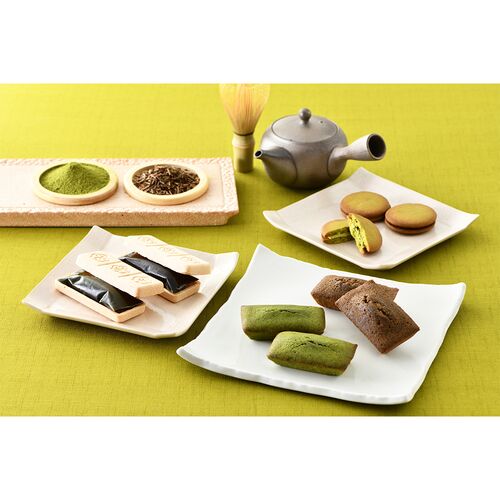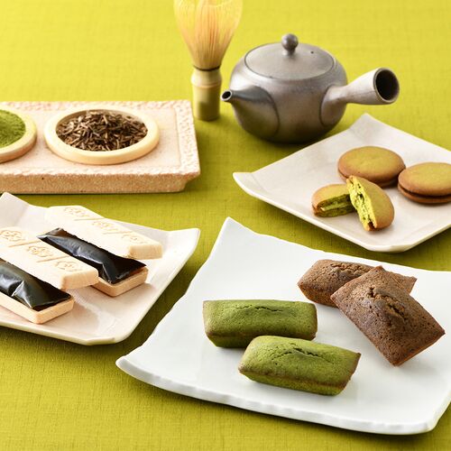 抹茶ラングドシャ×4、抹茶フィナンシェ×2、ほうじ茶フィナンシェ×2、抹茶最中×2、ほうじ茶最中×2