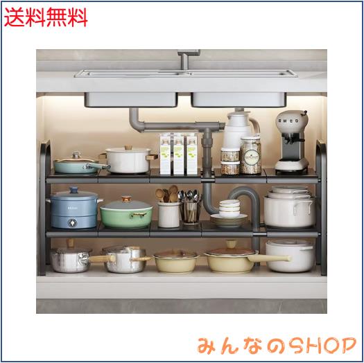 キッチン シンク下 収納ラック シンク下フリーラック ワイド 伸縮タイプ シンク下伸縮棚 キッチン収納棚 簡単組立 洗面台下 横幅調整可能