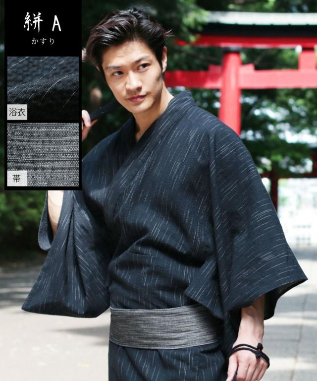 スプートニクス(SPUTNICKS)/浴衣 メンズ しじら浴衣 ワンタッチ帯 下駄 扇子 巾着 5点セット