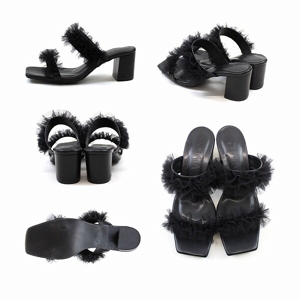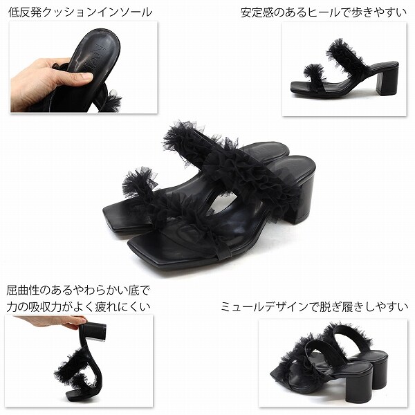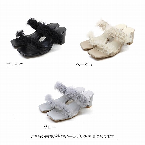 【25春夏新作】チュールフリルダブルバンドミュールサンダル