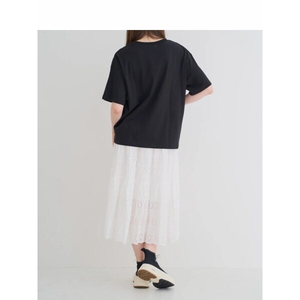 レース素材のスカートやチュール素材のスカート合わせでガーリーにまとめるのも◎。