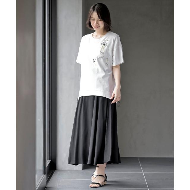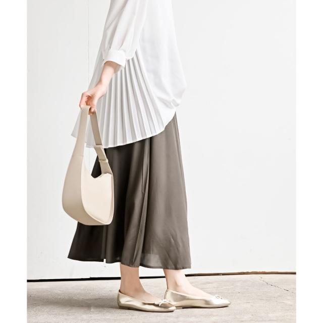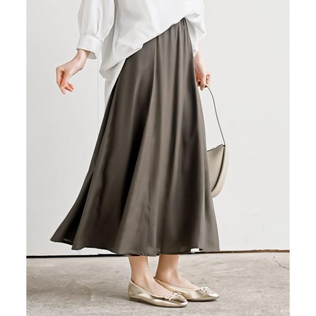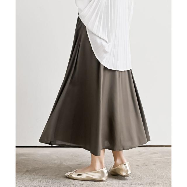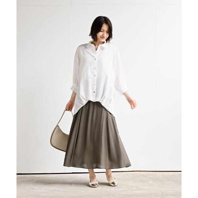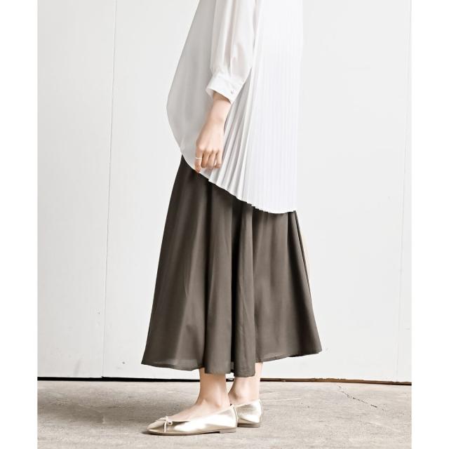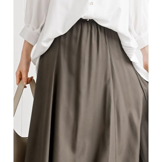 ヒップ周りはタイトめに、裾はふわっと広がる女性らしい装いに仕上げてくれます。